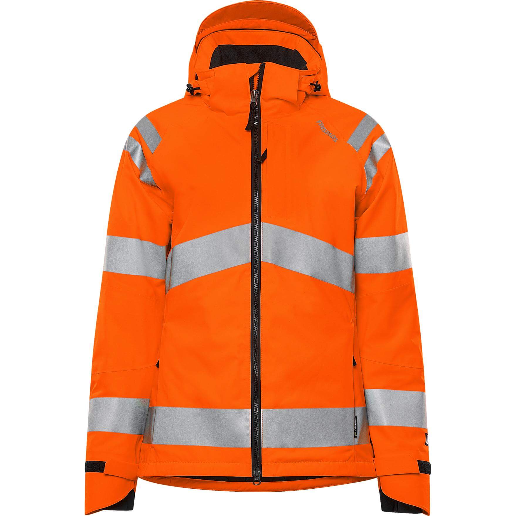 Fristads Womens Hi-Vis Stretch Waterproof Breathable Insulated Winter Jacket Class 3 - 4683 GLPS Hi-Vis Orange Front1#colour_hi-vis-orange