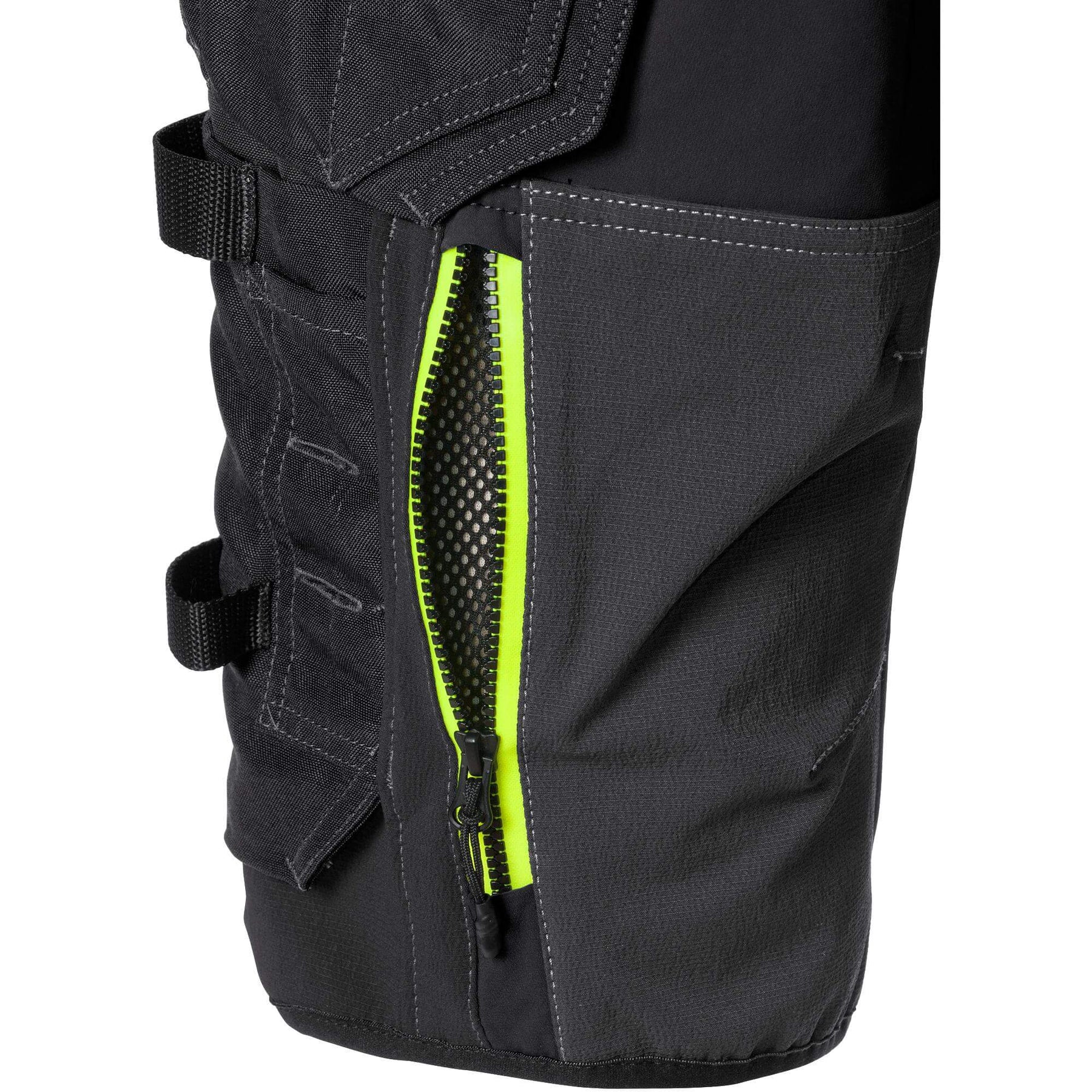 • 2 loose-hanging CORDURA® pockets, one with 3 smaller pockets, tool loops and zip pocket, one with extra pocket and zip pocket