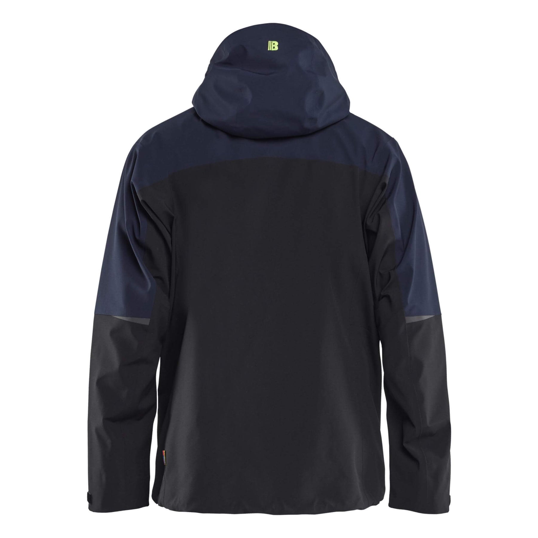 Blaklader 49801916 STRIKER Waterproof Stretch Shell Jacket Dark Navy Blue/Hi-Vis Yellow Rear #colour_dark-navy-blue-hi-vis-yellow