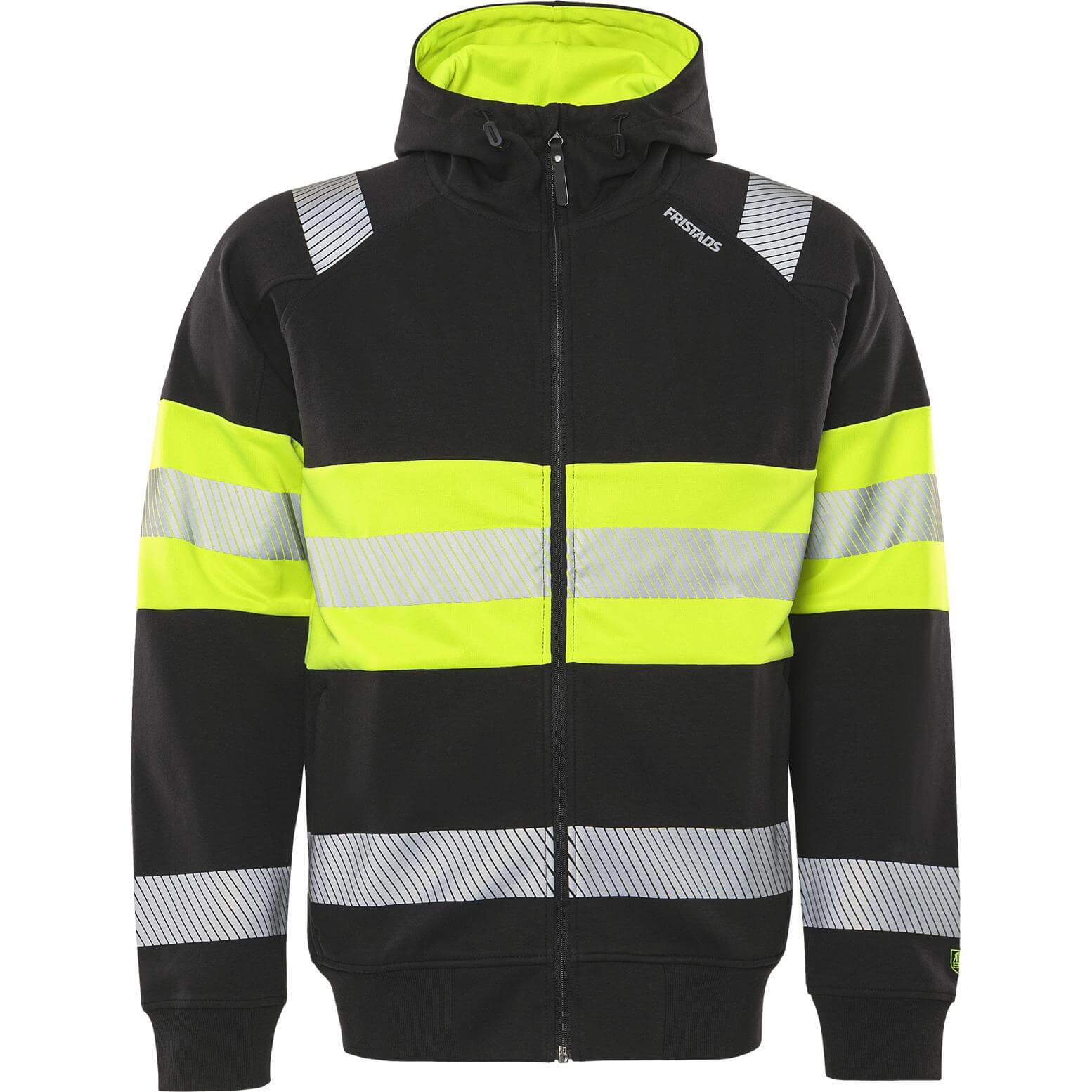 Fristads Hi-Vis Double Face Cotton Fabric Hooded Sweatshirt Jacket Class 1 - 7532 GKC Hi-Vis Yellow/Black Front1#colour_hi-vis-yellow-black