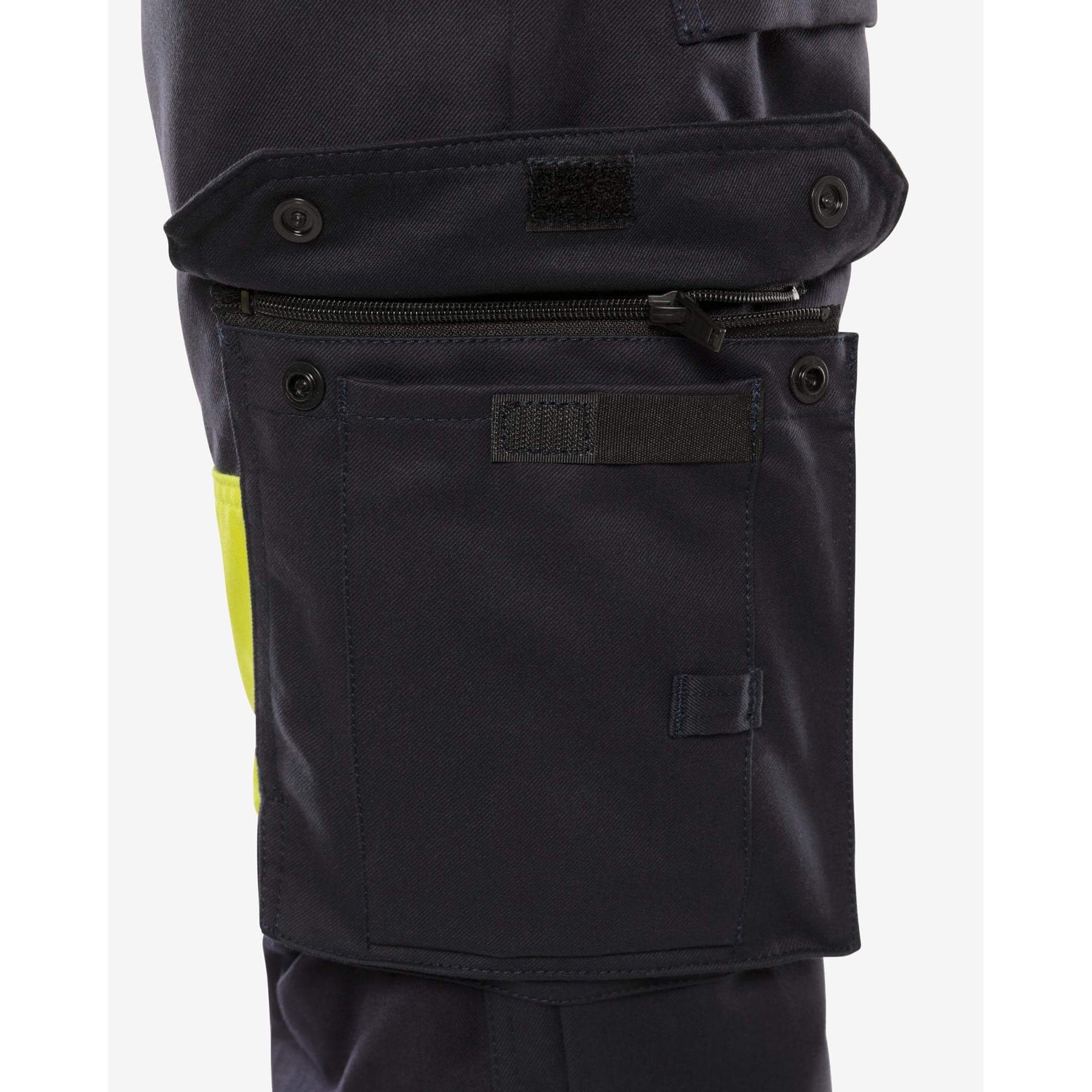 Fristads Womens Flamestat Hi-Vis Arc and Multi-Protective Flame Retardant Trousers Class 1 - 2776 ATHS Hi-Vis Yellow/Navy Detail2#colour_hi-vis-yellow-navy