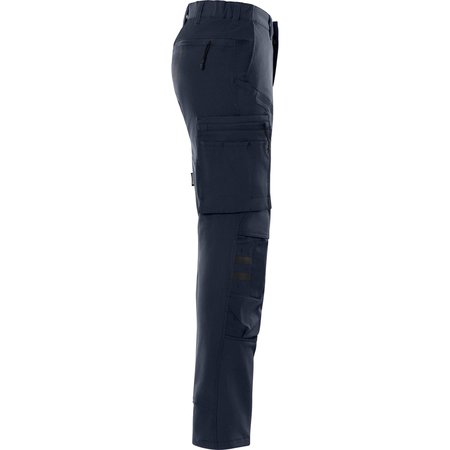 For those who require specialized storage, the trousers offer a leg pocket with snap fastening, complete with an inside loop for a folding rule, a zip pocket, a pen pocket, and 2 tool pockets. Another leg pocket includes a mobile phone pocket and ID card pocket with flap, along with a D-ring under the flap for additional utility.