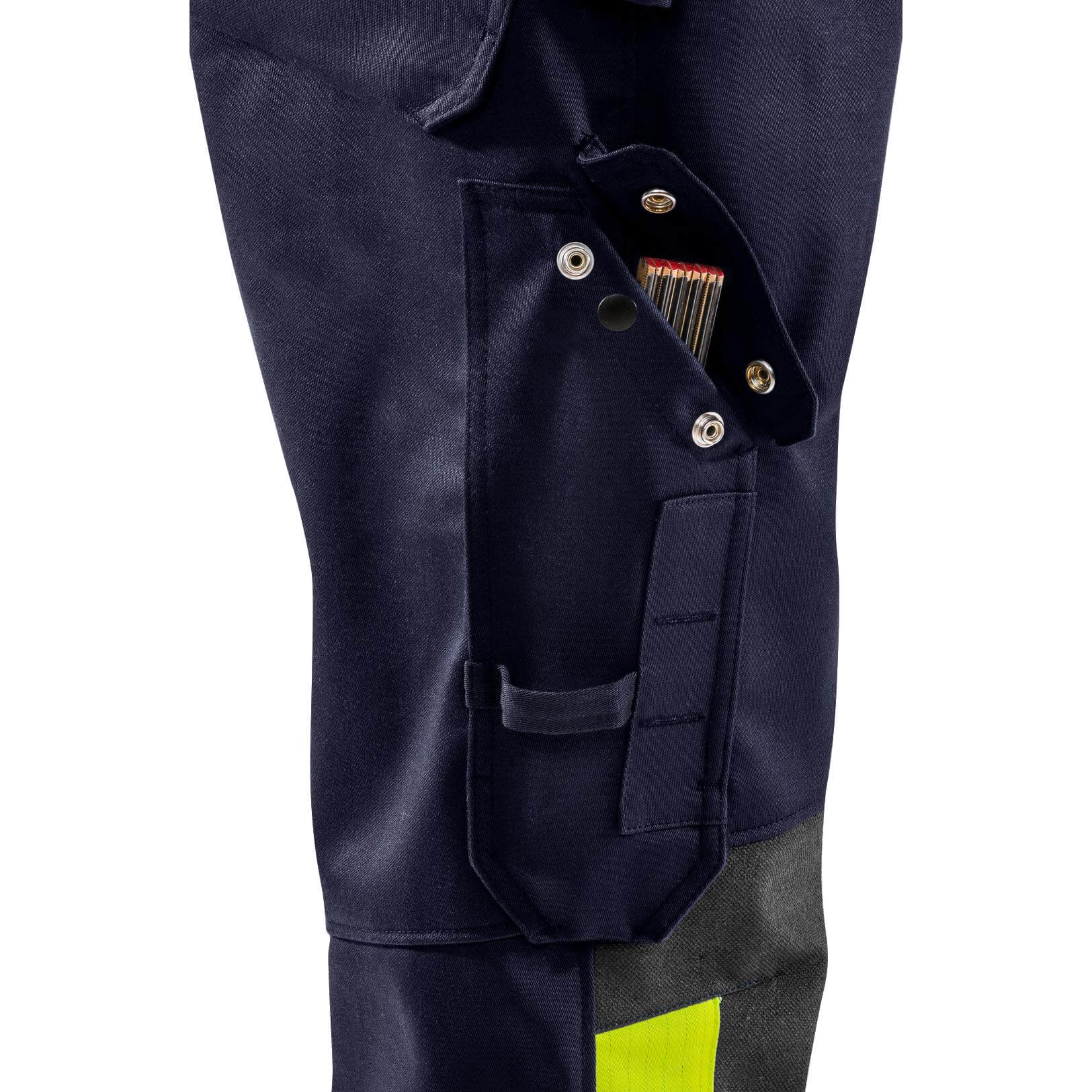 Fristads Flame Retardant Welding Coverall 8044 - WEL Navy/Hi-Vis Yellow Detail2#colour_navy-hi-vis-yellow