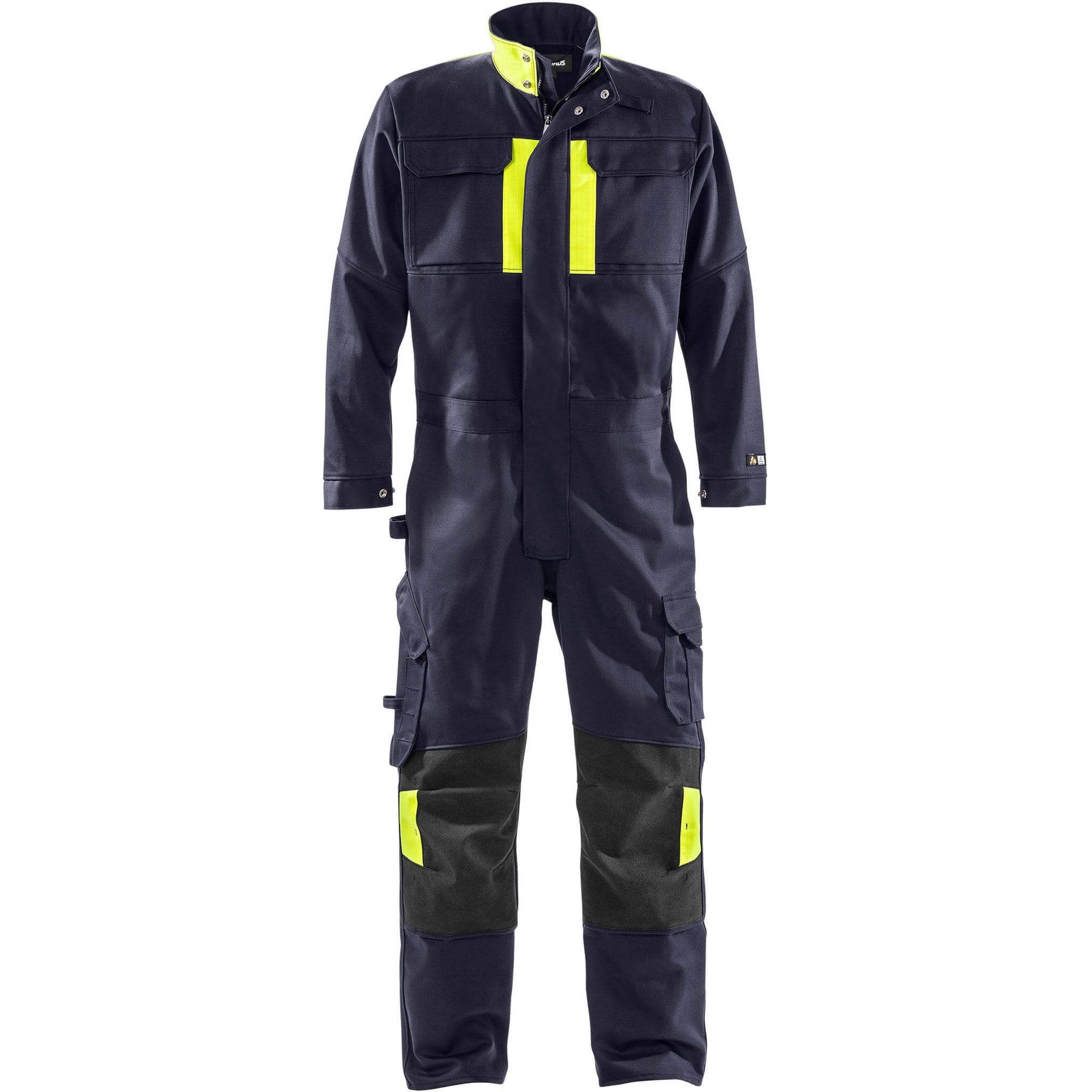 Fristads Flame Retardant Welding Coverall 8044 - WEL Navy/Hi-Vis Yellow Detail1#colour_navy-hi-vis-yellow